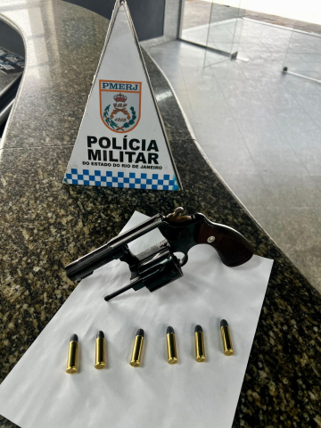 Na busca, os policiais encontraram em posse do abordado um revólver calibre .38, com número de série 1613179. A arma estava carregada com seis munições do mesmo calibre.