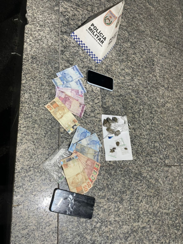Já com o segundo suspeito, os agentes localizaram R$ 84 em espécie e um telefone celular. Próximo ao local onde ele estava, sob uma pedra, foi encontrada uma sacola contendo cinco buchas de maconha e um pino de cocaína.