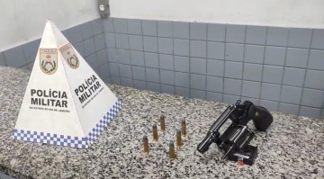Durante a verificação do automóvel, que estava aberto, os policiais realizaram revista no interior e localizaram, no porta-luvas, um revólver da marca Taurus, calibre .38, municiado com seis projéteis intactos. Ao lado do carro, também foi encontrado um aparelho celular.