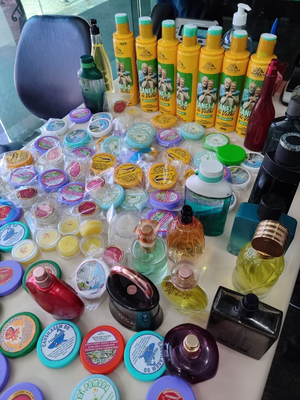 Durante a fiscalização, foram recolhidos diferentes tipos de produtos. Entre os itens apreendidos estão 25 perfumes, 149 pomadas sem procedência comprovada, 7 unidades de um produto popularmente conhecido como “canela de velho”, além de 10 sabonetes e 23 essências com fragrância semelhante à de uva.